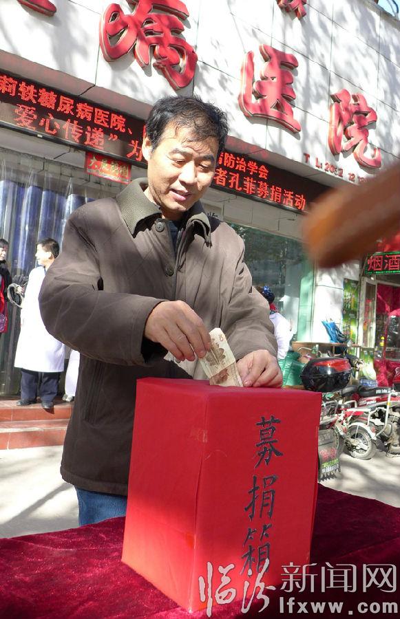 臨汾新聞網(wǎng)訊 12月14日,臨汾莉軼糖尿病醫(yī)院的醫(yī)護人員在進行愛心捐款。該醫(yī)院從本報獲悉霍州白血病女孩孔菲求助的報道后,組織了全院醫(yī)護人員進行了愛心募捐,同時,住院的患者也紛紛加入到愛心募捐活動中來,用實際行動參與到公益活動中來。 本報記者 閆銳鵬 攝