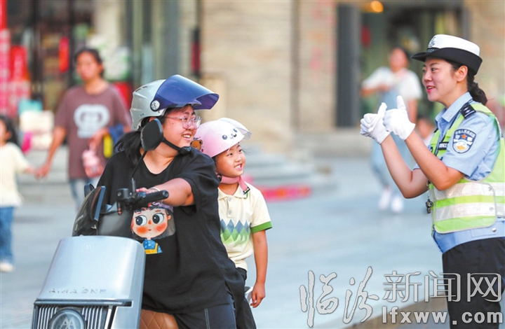 臨汾新聞網(wǎng)訊 9月8日,在市區(qū)貢院街,市公安局交警支隊(duì)直屬二大隊(duì)的執(zhí)勤民警段燦欣在為文明出行的小朋友點(diǎn)贊加油。隨著開學(xué)季的到來(lái),市公安局交警支隊(duì)全面啟動(dòng)“護(hù)學(xué)崗”模式,在校園周邊以及上下學(xué)流量大的路段加強(qiáng)交通疏導(dǎo)和秩序維護(hù),營(yíng)造安全、文明、暢通、和諧的交通環(huán)境。