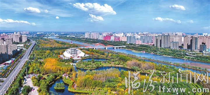 臨汾新聞網(wǎng)訊 深秋時(shí)節(jié),汾河文化生態(tài)景區(qū)層林盡染,整個(gè)公園變得色彩斑斕,與城市交相輝映,共同構(gòu)成一幅色彩濃郁、詩(shī)意盎然的生態(tài)畫卷。圖為10月31日拍攝的汾河兩岸風(fēng)景。