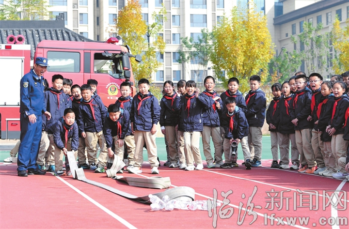 臨汾新聞網(wǎng)訊 11月4日,在臨汾一中第一附屬學(xué)校消防體育課上,學(xué)生們進(jìn)行“水帶保齡球”比賽。全國消防宣傳月期間,堯都區(qū)消防救援大隊(duì)20名校外輔導(dǎo)員走進(jìn)中小學(xué)校園,開展多種形式消防安全教育活動(dòng),提升學(xué)生消防安全素養(yǎng)和自防自救能力。