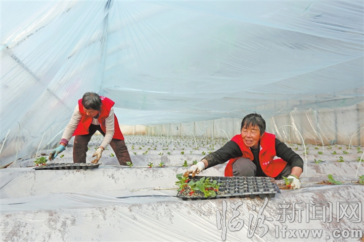 臨汾新聞網(wǎng)訊 近日,在堯都區(qū)段店鄉(xiāng)果中果農(nóng)業(yè)生態(tài)園,村民正在大棚里栽種甜瓜秧苗。眼下正是甜瓜育苗關鍵時期,大棚地溫提高快并且穩(wěn)定,采用高壟栽培的甜瓜,經(jīng)過科學管理,五月份就可搶鮮上市。