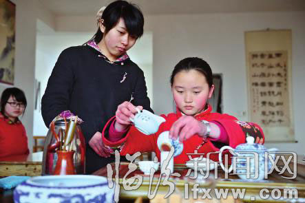 2月20日,一名學(xué)生在學(xué)習(xí)茶道。2014年2月,南昌市西湖區(qū)人民檢察院在江西南昌豫章書院建立了未成年人觀護(hù)幫教基地。