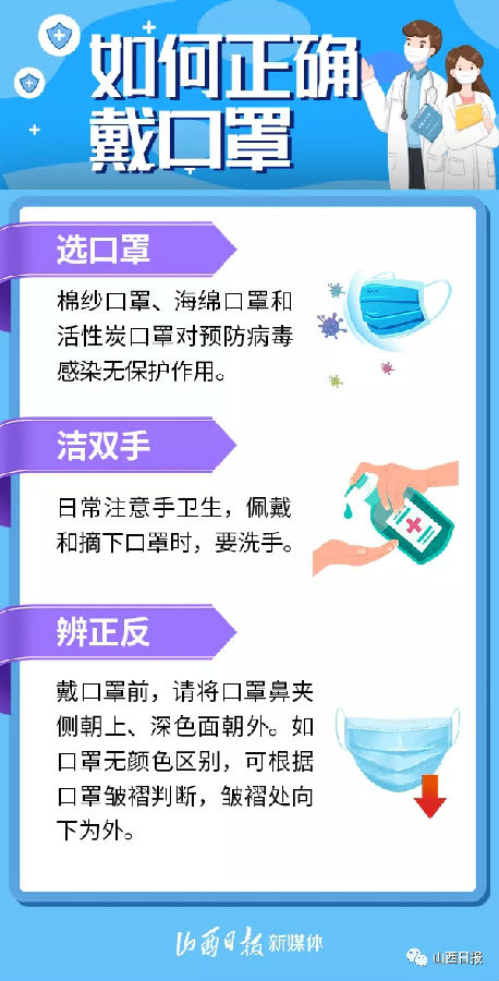 口罩是預(yù)防呼吸道傳染病的重要防線,不僅可以防止病人噴射飛沫,降低飛沫量和噴射速度,還可以阻擋含病毒的飛沫核,防止佩戴者吸入,從而有效降低新型冠狀病毒感染風(fēng)險(xiǎn)。如何正確戴口罩?哪些場(chǎng)所要戴口罩?一組海報(bào)告訴你——