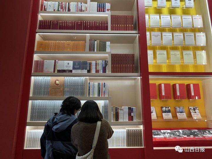 同樣在是文化建設(shè)單元的展示墻上,一套完整的《云岡石窟全集》與地方展區(qū)山西單元展出的云岡石窟3D打印作品呼應(yīng),組成“文化山西”最強(qiáng)代表。