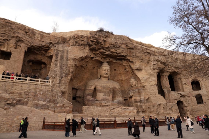 3月27日,游客參觀山西省大同市的云岡石窟景區(qū)。 朱興鑫 攝