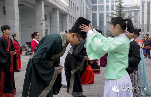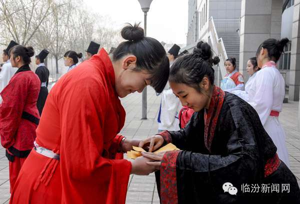 現(xiàn)場共有25名學(xué)生接受了5位夫子的“冠笄”之禮和賜字,男子成人禮稱之為“冠禮”,女子成人禮稱之為“笄禮”,隨后進(jìn)行了成人宣誓。