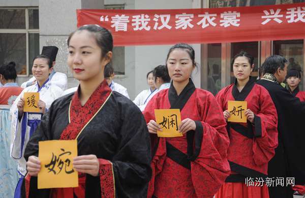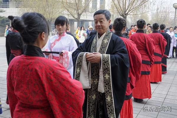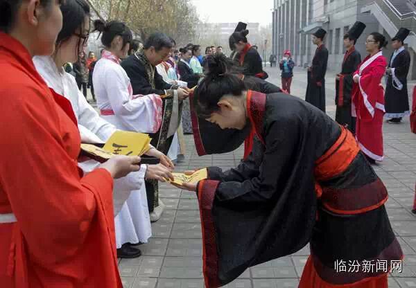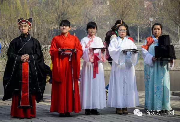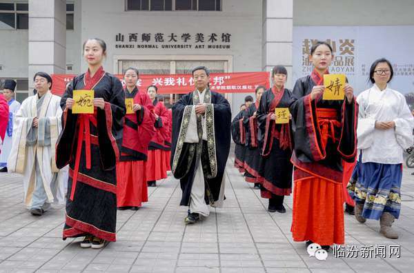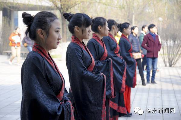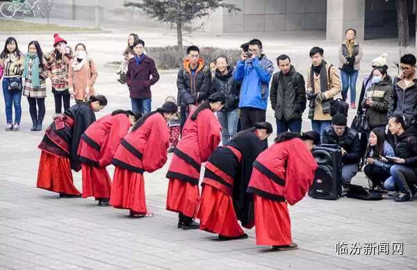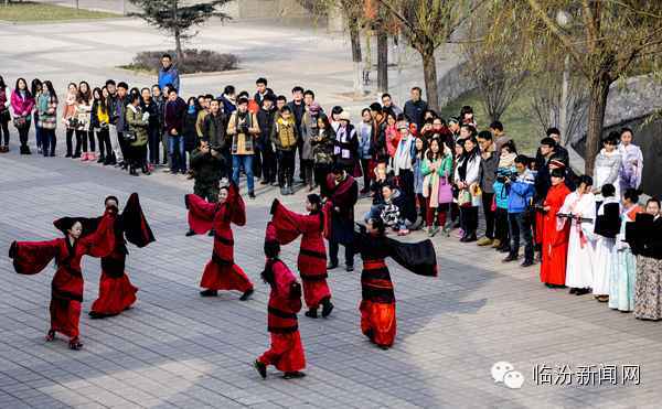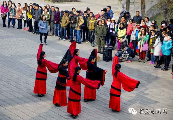 臨汾新聞網(wǎng)訊 (記者 李靜 實(shí)習(xí)生 楊杰) 12月6日,伴著曲調(diào)悠揚(yáng)的《相和歌》,20多名身著漢服的大學(xué)生在山西師范大學(xué)美術(shù)館廣場翩翩起舞,讓觀者有種穿越之感。