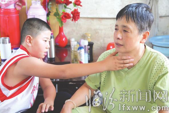說著說著,喬小平再一次抹淚了。自從虎子爸去世后,他們祖孫倆的生活都是靠親人們接濟度日。性格剛強的喬小平也不愿拖累親人,她希望自己能有份好些的工作,讓虎子餓不著、凍不著,還清所有的債,然后再給虎子攢些錢,她害怕有一天,自己脖子上的“肉疙瘩”出現(xiàn)病變,那樣虎子就更悲慘了。