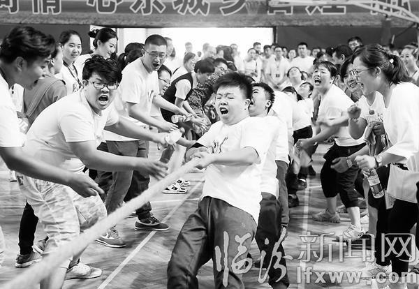 臨汾新聞網(wǎng)訊 9月10日,在市鐵路體育館,堯都農(nóng)商銀行的參賽隊伍在進行拔河比賽。當(dāng)日,為期兩天的堯都農(nóng)商銀行第五屆職工運動會舉辦,由轄區(qū)各支行及總行機關(guān)組成的多支參賽隊伍進行了拔河、健美操以及象棋等10余個項目的角逐。 記者 閆銳鵬 攝