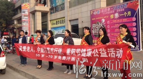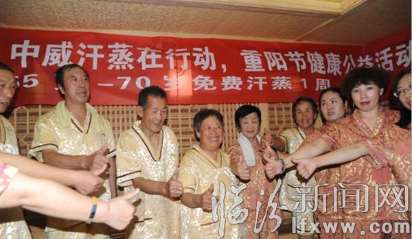 臨汾新聞網(wǎng)訊 弘揚中華傳統(tǒng)美德,傳播健康養(yǎng)生文化,10月7日,在堯都區(qū)五一東路汗蒸館,老年朋友們正在體驗健康汗蒸。在重陽節(jié)來臨之際,中威盛世集團第二屆全國免費送健康大型公益活動在臨舉行,臨汾市堯都區(qū)三家加盟店開展了為55歲至70歲老人免費體檢、免費汗蒸一周, 講解健康養(yǎng)生知識的公益活動,通過老年朋友們的親身體驗,使汗蒸健康理念深入人心,讓廣大市民獲得實惠,得到關(guān)愛。