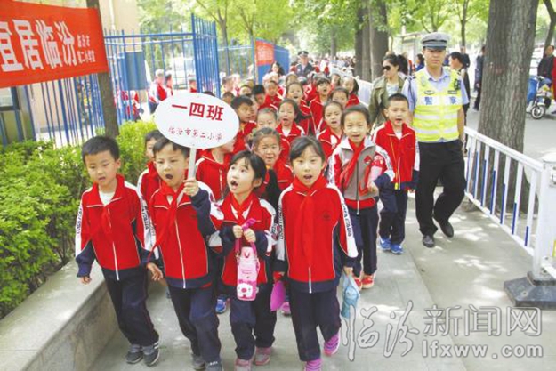 同時,位于車站街的臨汾市第二小學門口,北城大隊護學崗的民警也早已就位,相對解放路的擁堵,車站街的交通狀況也不容樂觀,車流量大、車速快,該學校的許多學生選擇乘坐公交車上下學。每逢放學高峰期,護學崗的民警不但得疏導交通,還要引導學生們有序乘坐公交車,為學生安全回家盡職盡責。