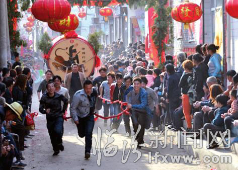 傳說歸傳說。但是沿襲下來的“跑鼓車”比賽活動,因?yàn)閺?qiáng)調(diào)團(tuán)隊(duì)協(xié)作,男女老少兼可。由于,祈福慶豐,強(qiáng)健體魄,傳承了當(dāng)?shù)乇牒反肢E豪放的民風(fēng),是當(dāng)?shù)匾豁?xiàng)十分特殊而又古老的民間活動。尤其是對提高村民的文化素質(zhì)和身體素質(zhì),增進(jìn)村民的友誼和團(tuán)結(jié),都起到了很好的作用。(黃正東 文/圖)