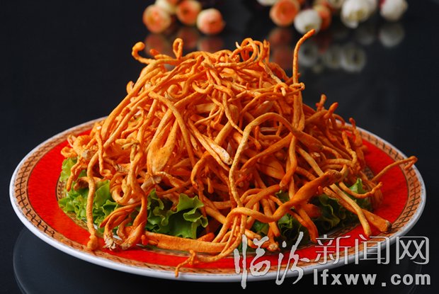 30、冬蟲夏草:青藏高原海拔3000—5000米的高山草甸和青山灌叢帶,寄生在蝙蝠蛾的幼蟲體上,每年5—7月出現(xiàn),具有補精益髓,保肺益胃,是我國著名的食用菌,具有補王之稱。